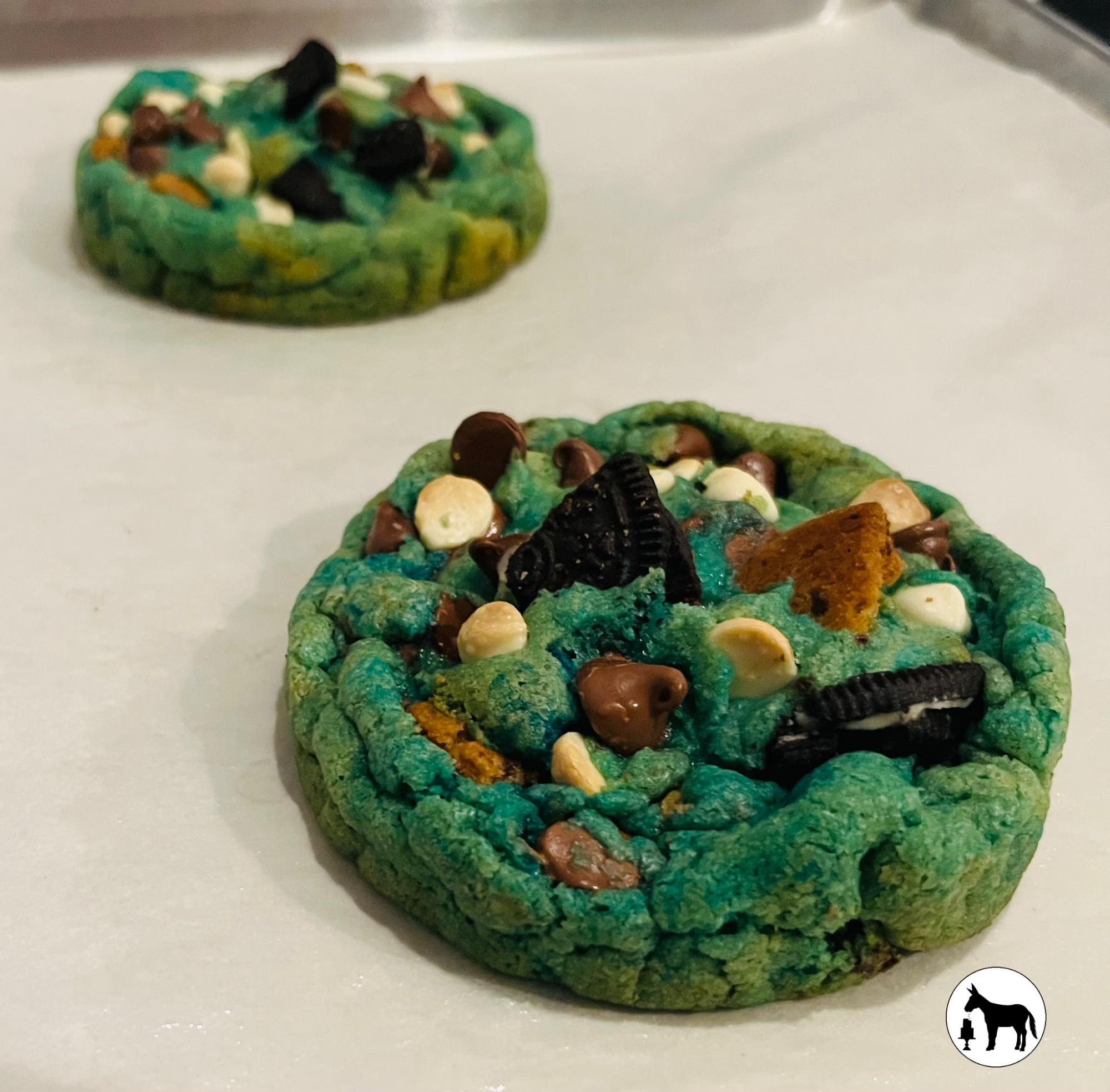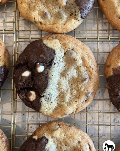 A combination of a chocolate cookie with white chocolate chips blended with our signature milk chocolate chip cookie