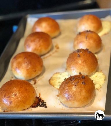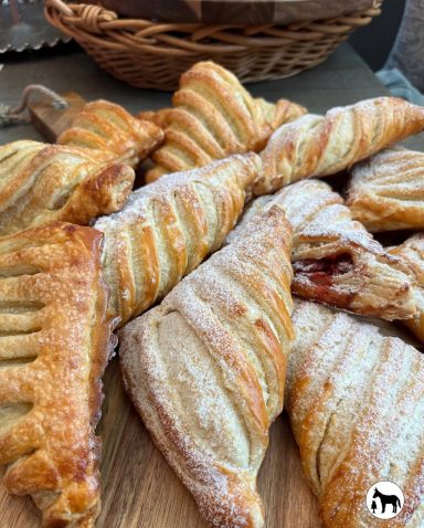Puff pastry turnovers filled with your choice of apple, cherry or blueberry filling, then dusted lightly with powdered sugar