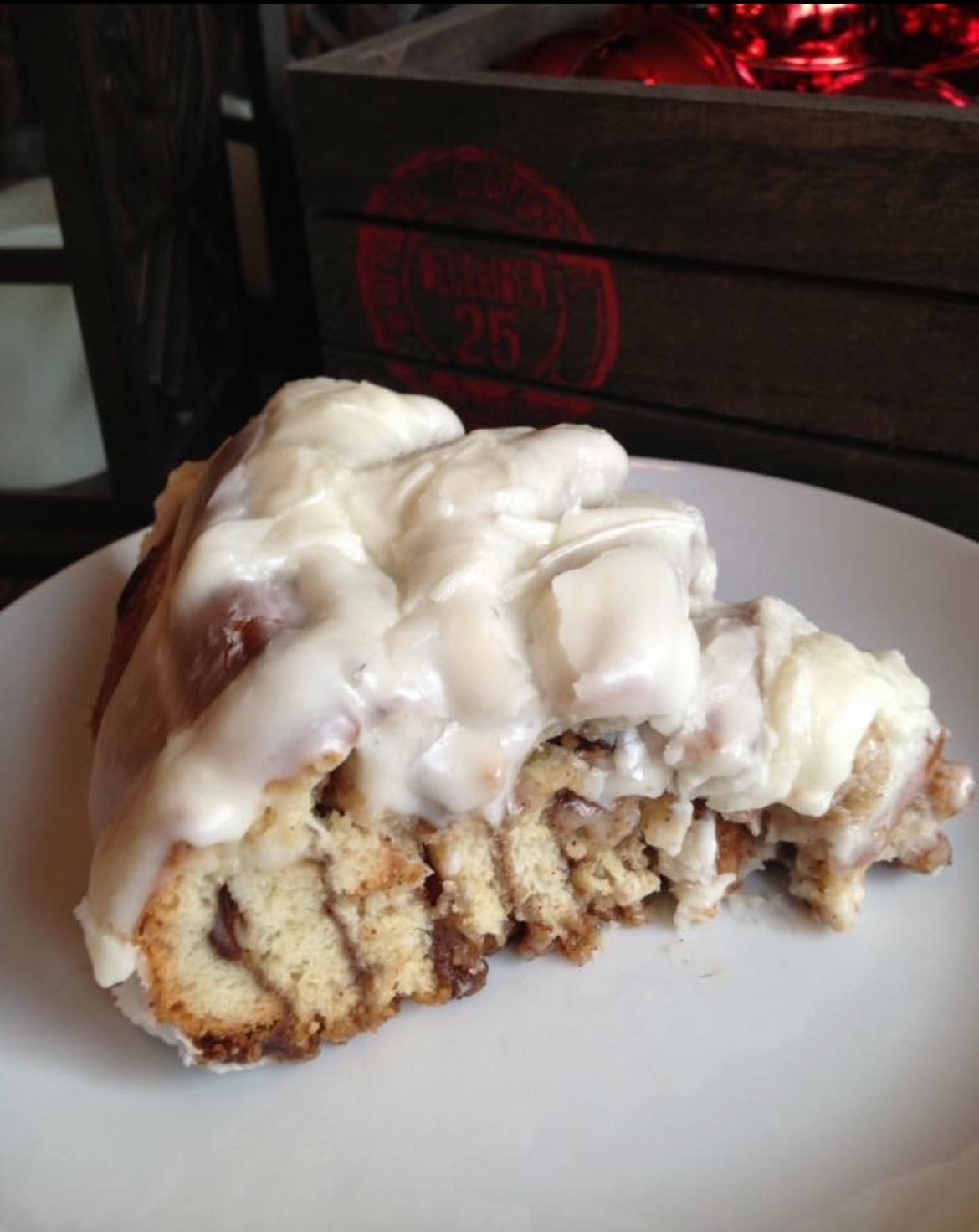 Our giant 8" cinnamon roll is moist and delicious ad covered with a traditional frosting or a cream cheese frosting